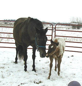Chris is one of those mares that will do about anything for you, we've used her as a tease mare to teach stallions to mount the dummy mount, she's a great nanny for foals and youngsters, especially the ones that need a bit of discipline, and she is the best baby sitter for human kids that you could hope to find!